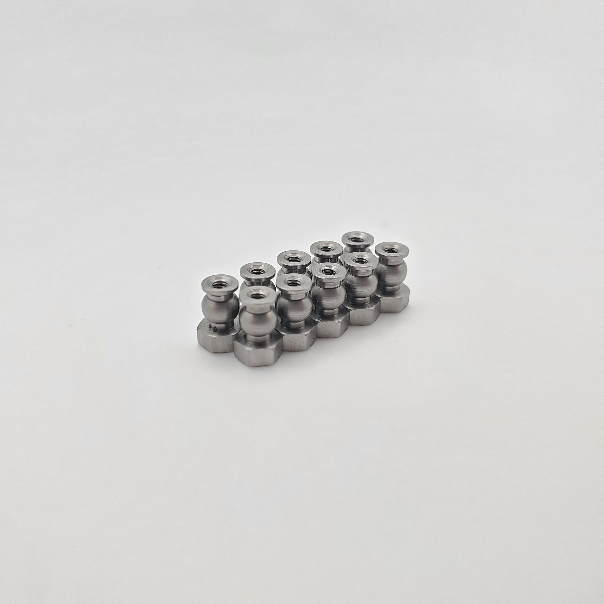 Precision-made M1.4 threaded pivots designed specifically for the SCX24 platform. Manufactured from stainless steel for strength and corrosion resistance, these pivots are primarily intended for upper, chassis-side suspension link applications, providing a secure, consistent fit while helping reduce slop and maintain smooth articulation. The hex uses a 4mm nut driver, the same size as the wheel nut, so no additional tools are required, making installation quick and easy. They may also be used in other applications where an M1.4 threaded pivot is required. Each pack includes 10 stainless steel threaded pivots only.